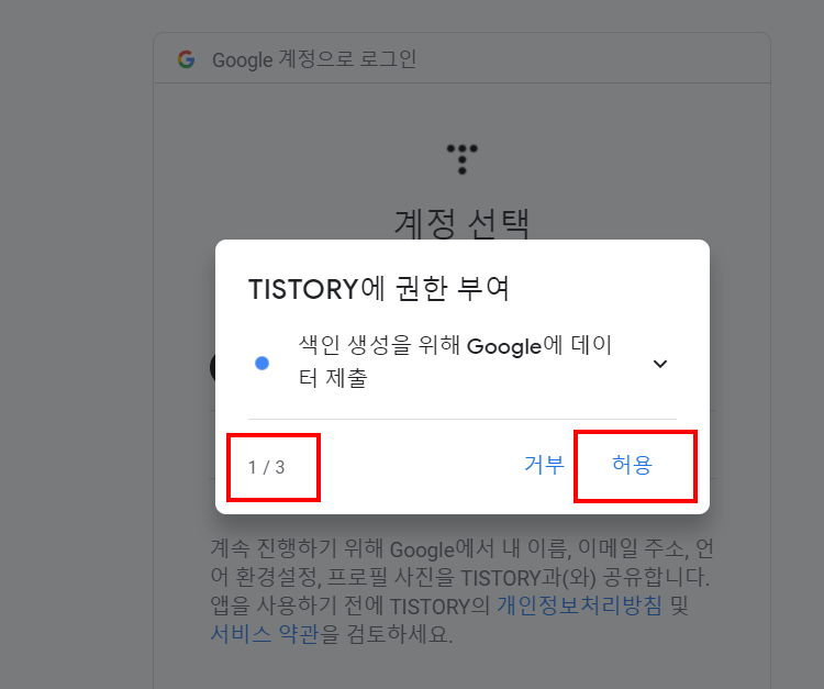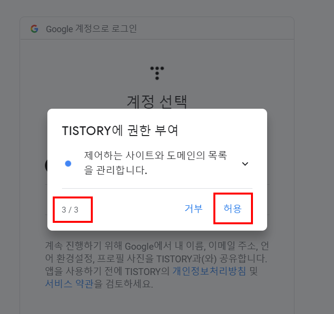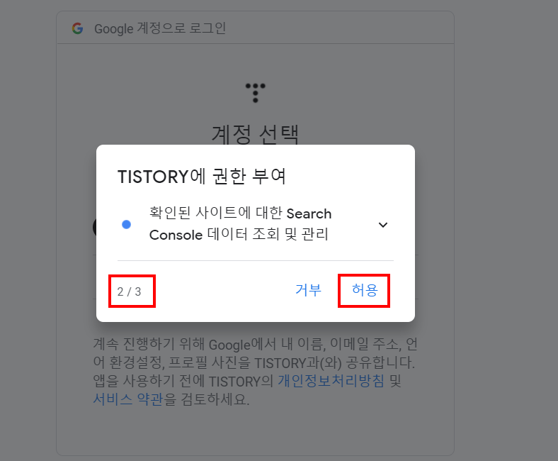 Step2 : 구글 계정을 연결 > 구글 계정 로그인 > 요청 권한 3가지 모두 '허용' > '적용'