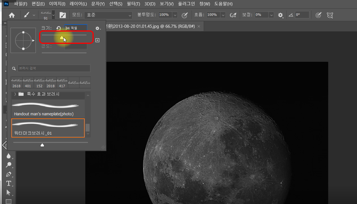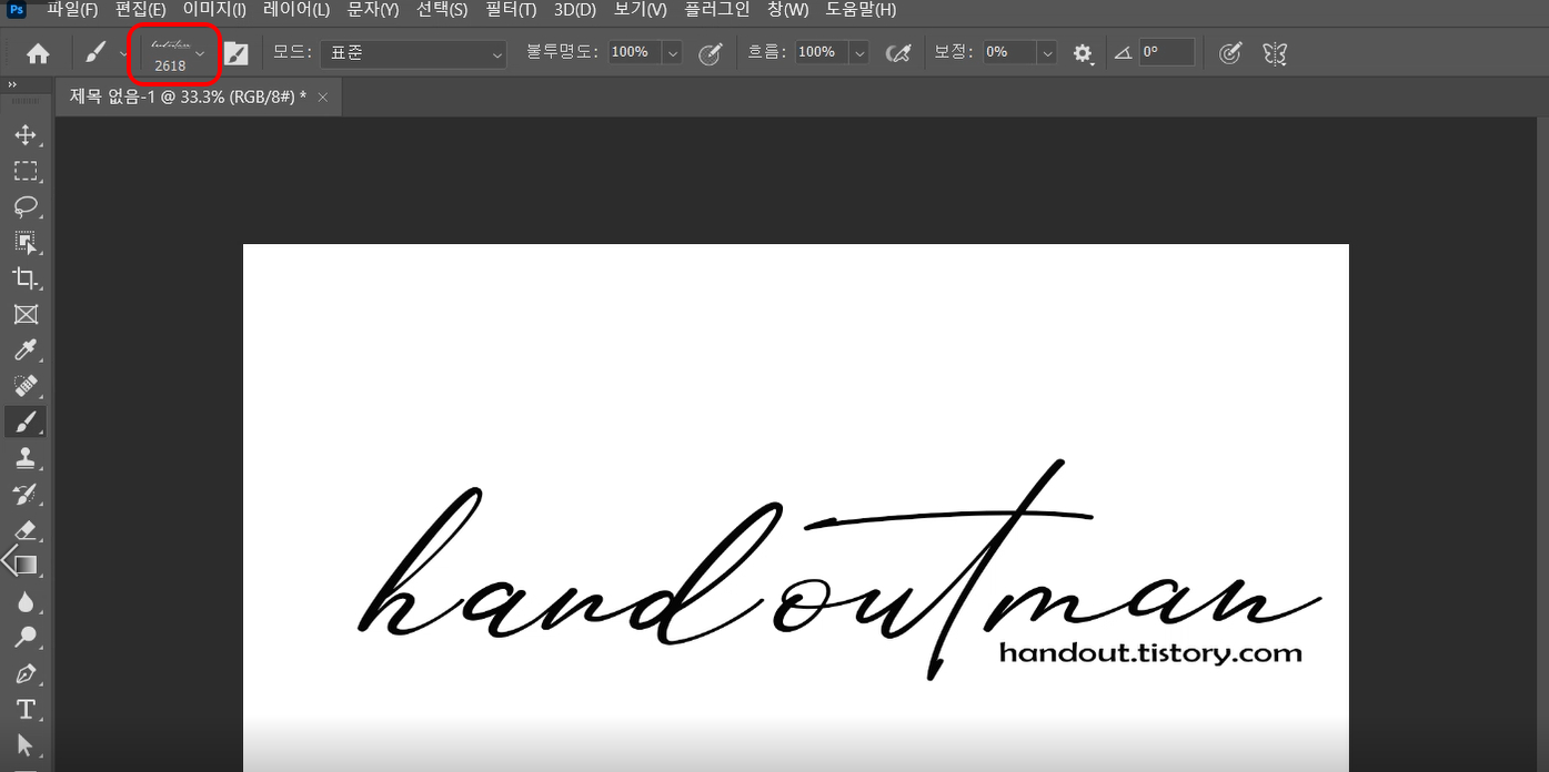 '브러시를 사전 설정 정의'를 하게 되면 아래 사진과 같이 방금 저장한 내 시그니쳐 브러시가 자동 선택된다.