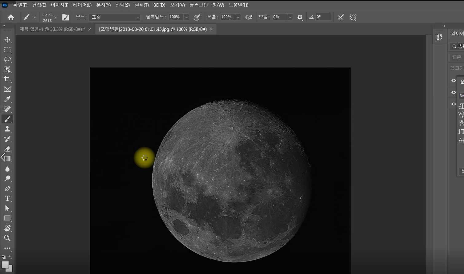 * 포토샵이 익숙한 사람은 브러시를 찍기 전에 레이어를 추가하여 작업하는 것이 좋다.