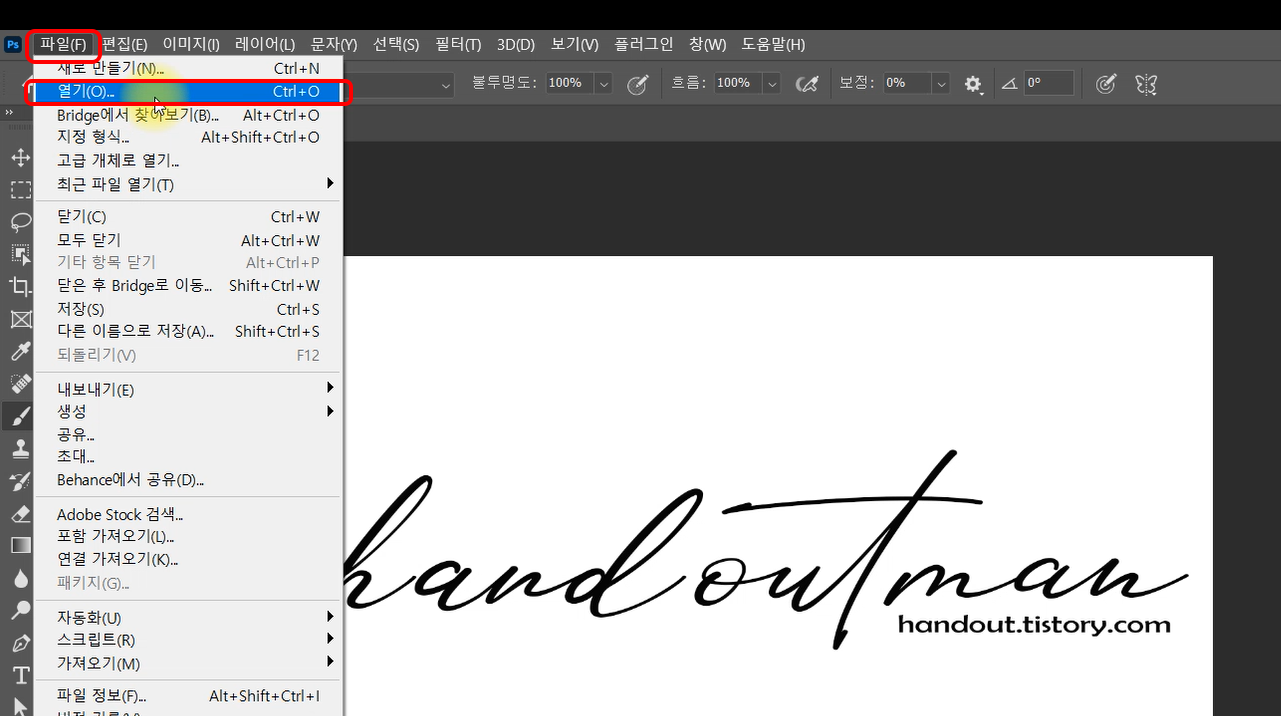 Step2 : 메뉴 > 열기 > 원하는 사진 불러오기