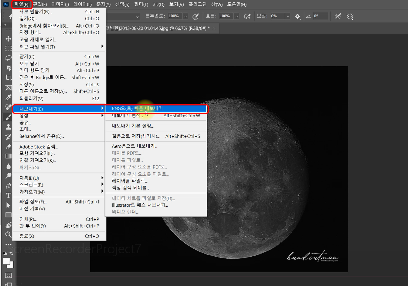 Step4 : 파일 > 내보내기 > png로 빠른 내보내기