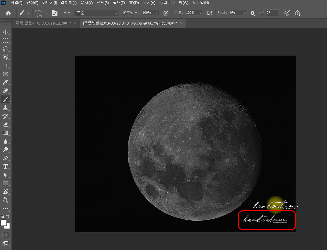 지난 게시물에서 워터마크로 사용할 시그니쳐를 만들어보았다.